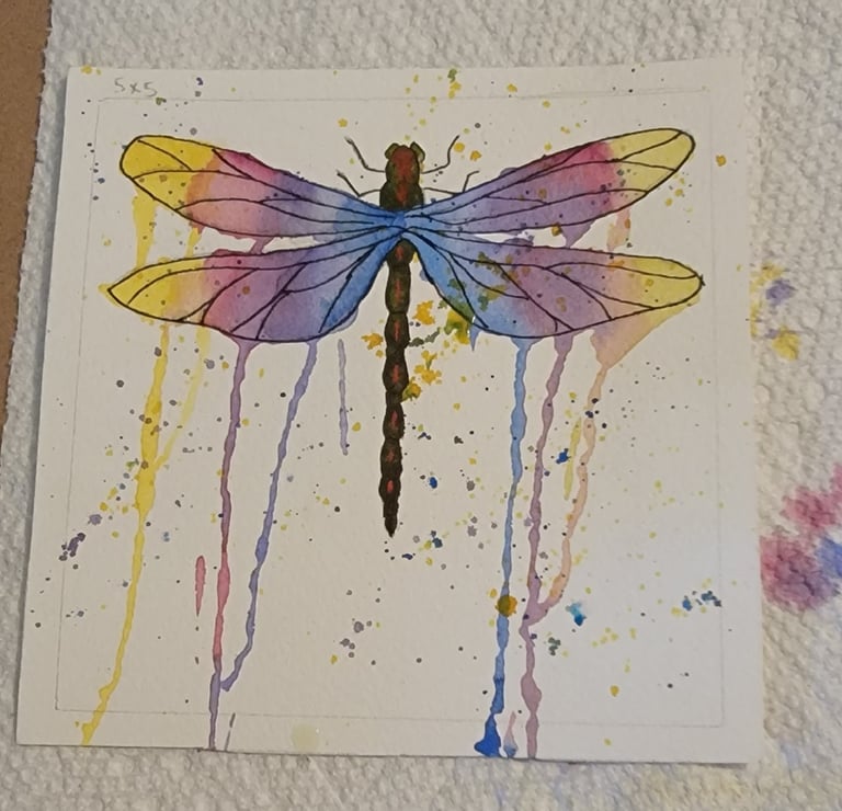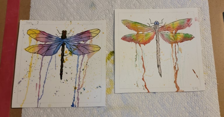 We wanted something that we could easily finish quickly, and came across a tutorial on these drip dragonflies. Lily and I spent the afternoon making a bunch of colorful drippy dragonflies.