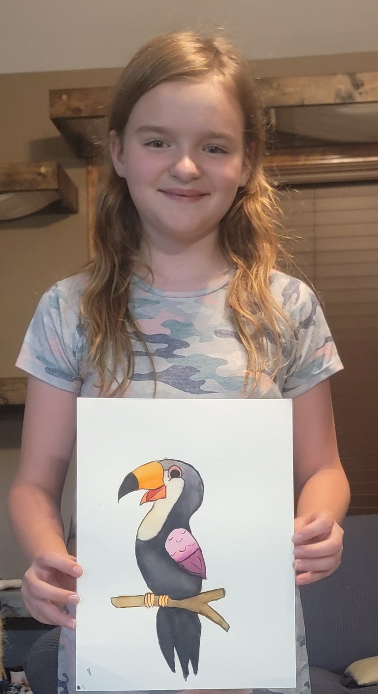 Lily spends a lot of time in her room painting or drawing. She came up today with a beautiful watercolor toucan.